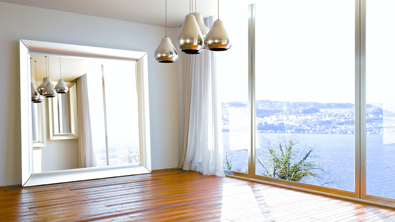 Ein Spiegel oder eine verspiegelte Wand vergrößert Räume optisch. Etwa im kleinen Badezimmer, im Schlafzimmer, Garderobe oder im Wohnraum entsteht der Eindruck, dass sich der zur Verfügung stehende Platz verdoppelt oder vervielfacht.